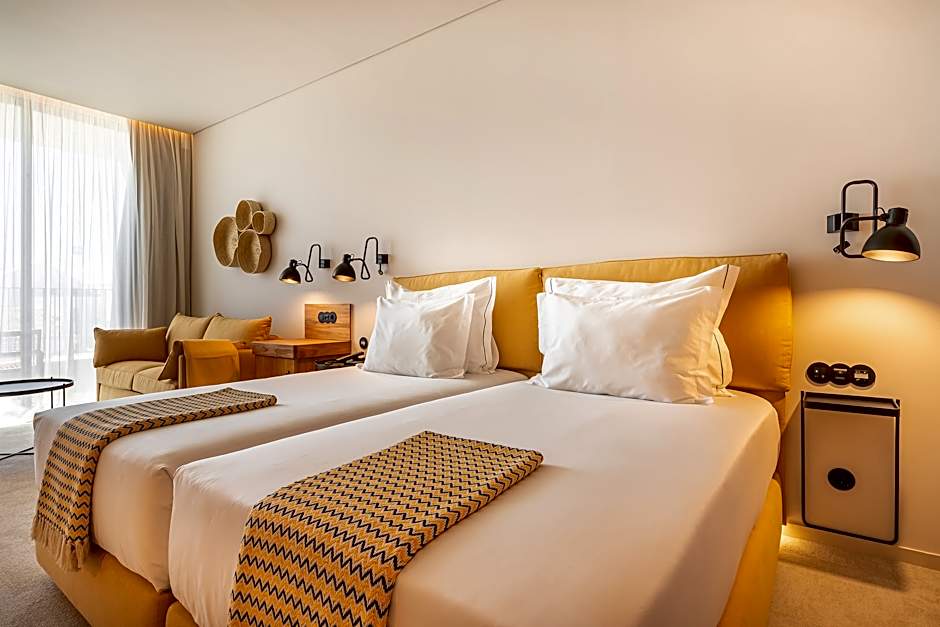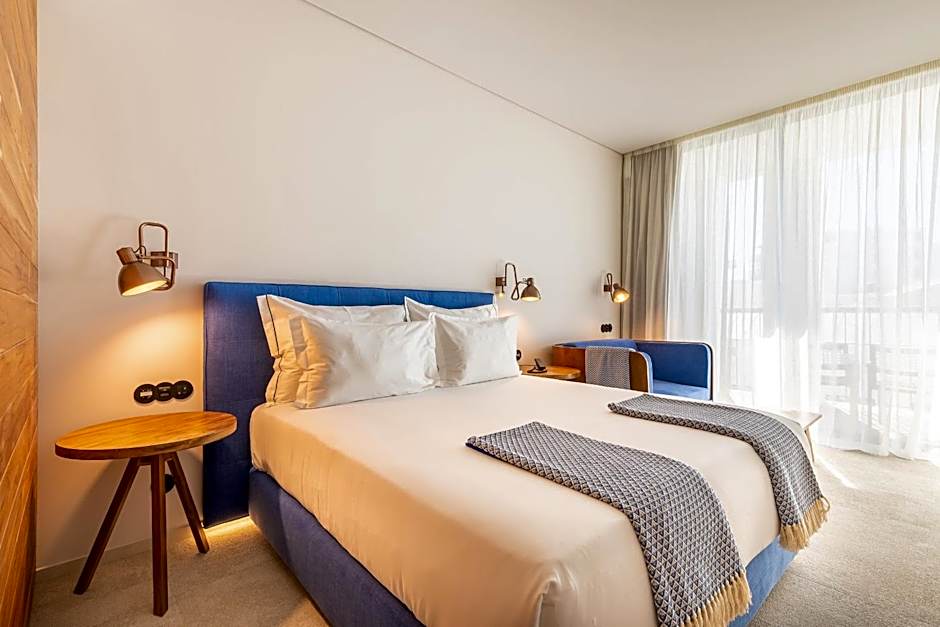 This room offers a desk, a Bluetooth speaker and a balcony. USB wall ports are available by the bed.